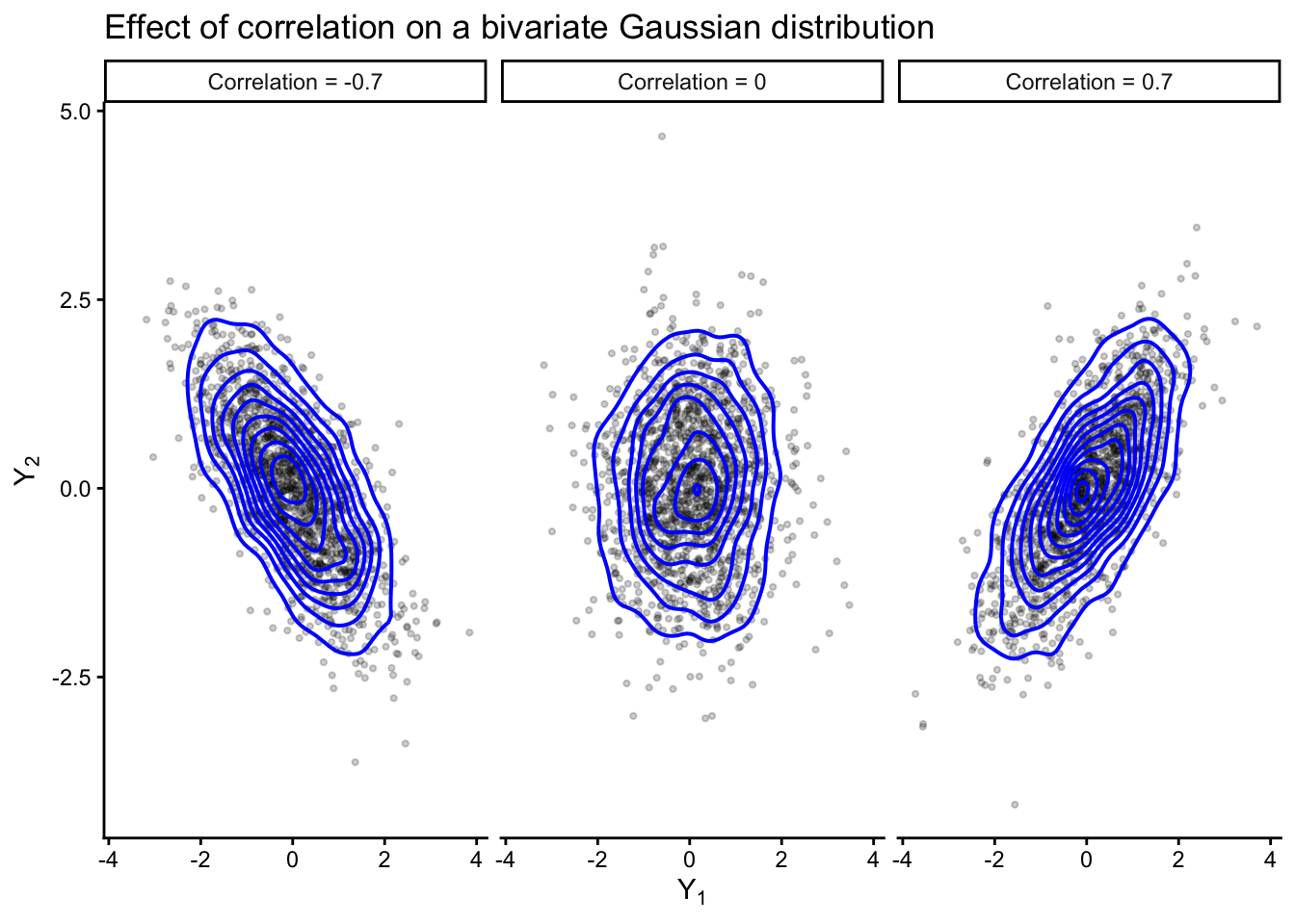 Suppose some components of \(\mathbf{Y}_i\) are missing. If the data are missing at random, then the observed part of each vector still contributes information about the mean and covariance, and the missing part can be sampled from its conditional distribution given the observed part.