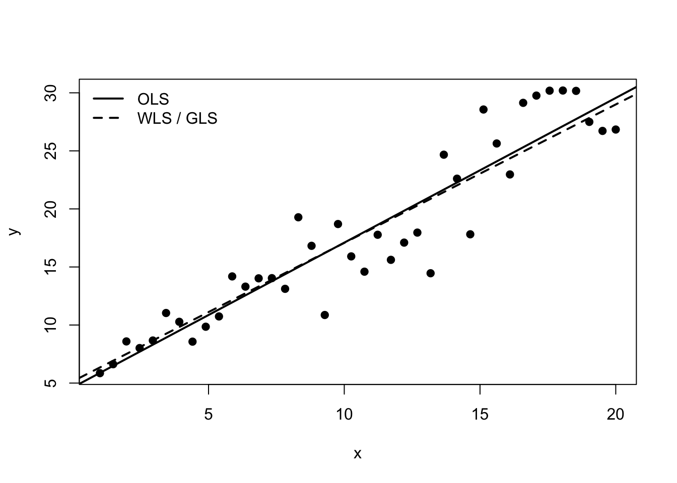 More general correlated-error models often require additional packages in practice, but the matrix formula is already enough to understand the core idea of GLS.