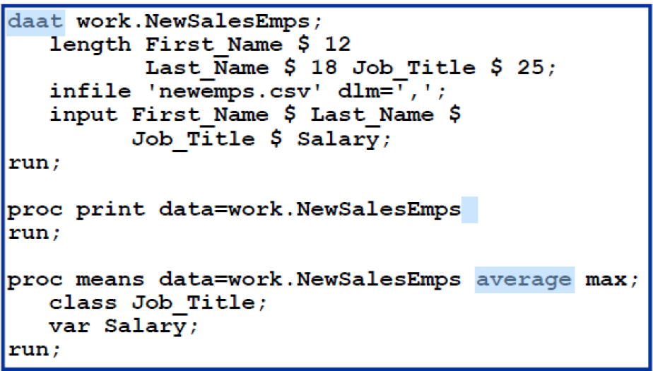 SAS statements have these characteristics (Check the highlight context in the following examples):