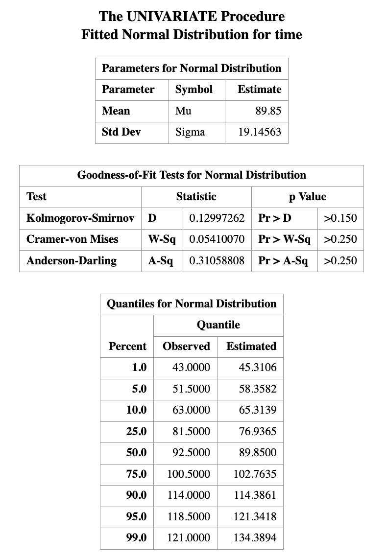PROC UNIVARIATE DATA=time;