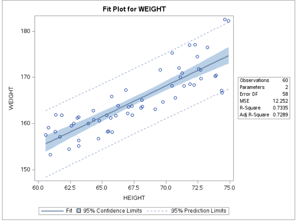REG X=HEIGHT Y=WEIGHT / GROUP=SEX;