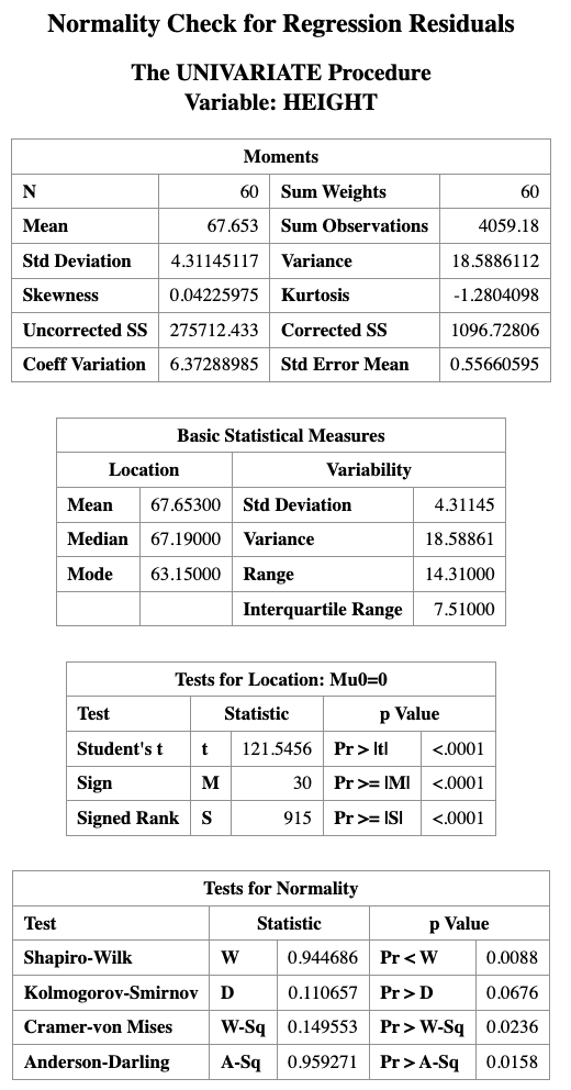 PROC UNIVARIATE DATA=MYOUT NORMAL;